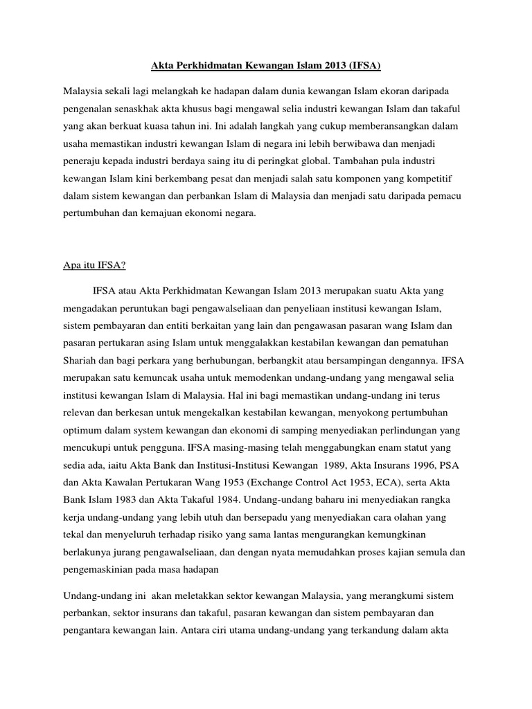 Akta Perkhidmatan Kewangan Islam 2013 Savannagwf